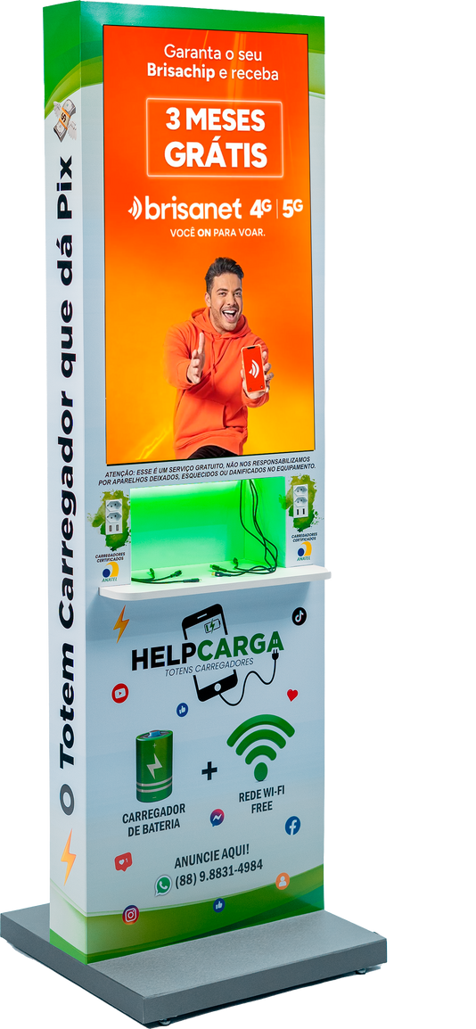 A tela vibrante e de alta resolução dos nossos totens carregadores garante que seus anúncios se destaquem e capturem a atenção do público.