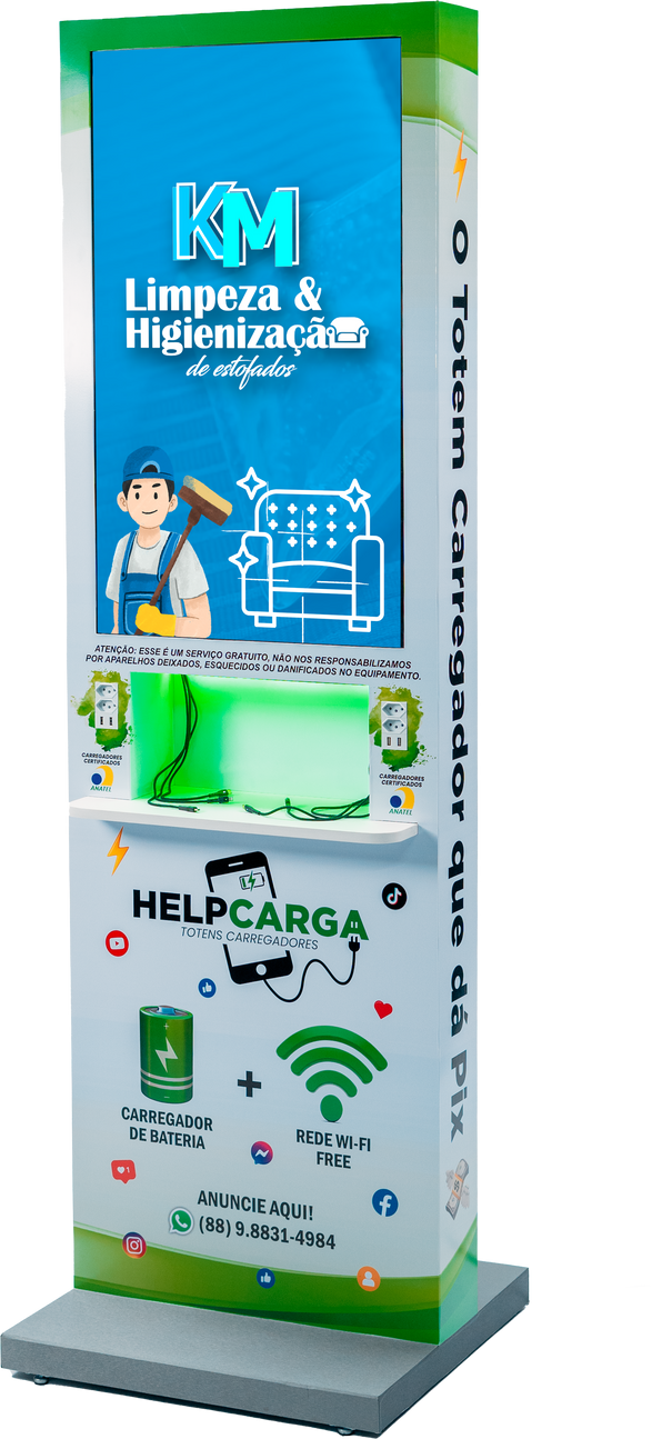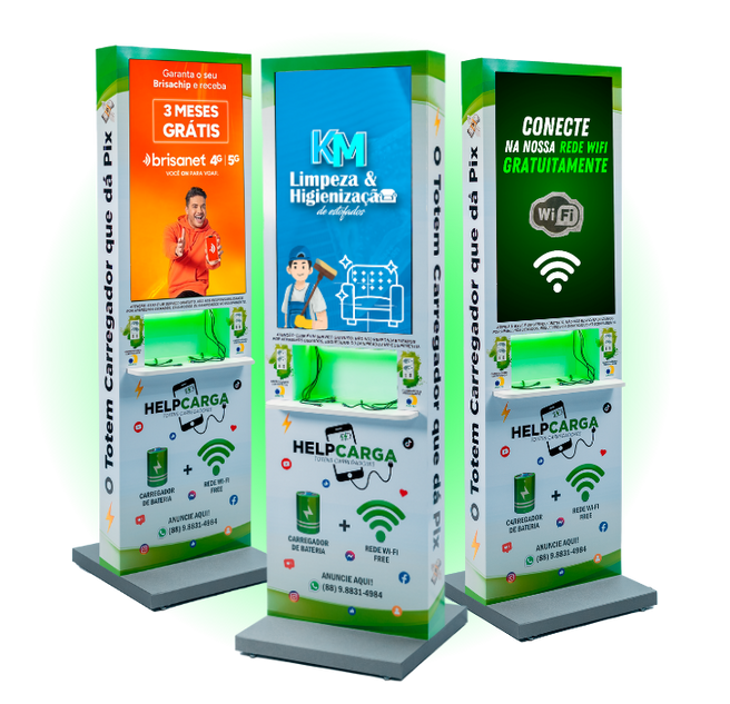 Utilize nossos totens carregadores como uma plataforma dinâmica para exibir seus anúncios em locais estratégicos. Aproveite a atenção do público enquanto eles carregam seus dispositivos móveis, garantindo uma exposição eficaz para sua marca.